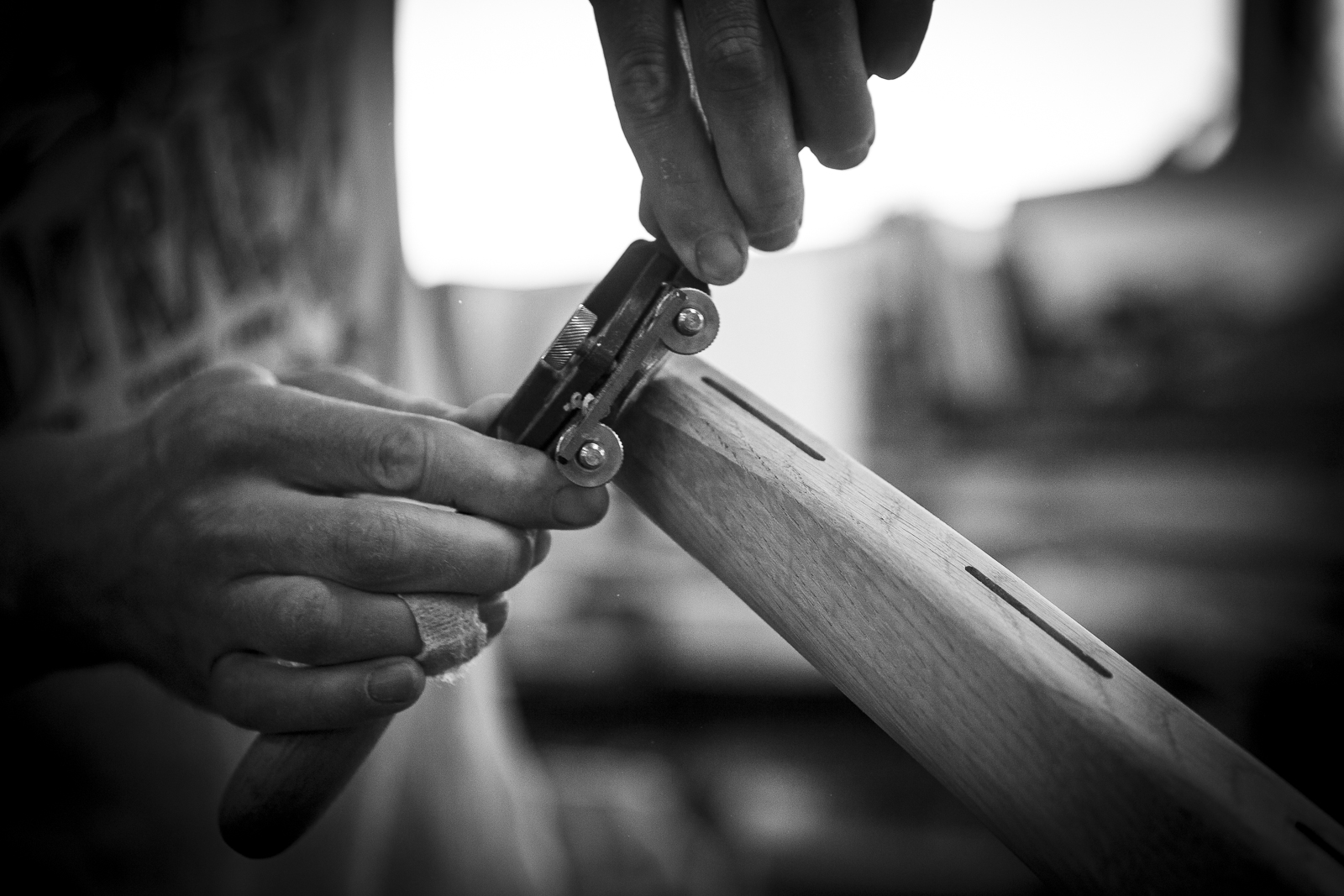 Moulding shells of wood is a part of laminating technology. Gluing layers of veneer makes it possible to produce large curved constructions that are light and strong. At PP Møbler we use this technique for making the seats for upholstery.